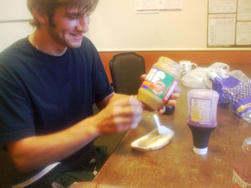 Au boulot, pendant un Break time ! Tartine de confiture avec du Peanuts butter !!! Typiquement Américain !