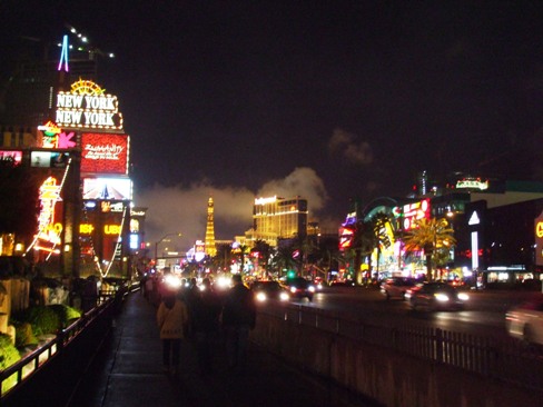 Arrivé à Las Vegas, 6h, je crois. Pour la petite histoire, quand on a quitté la Californie pour rentrer dans le Nevada, ça nous a fait exatement pareil que dans le films "Bienvenue chez les ch'tis" avec le panneau Pas de Calais : une énorme averse !